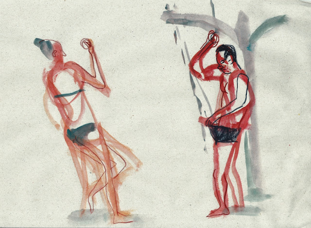 Here are some recent sketches done on a beach - a perfect place for sketching free models in action.